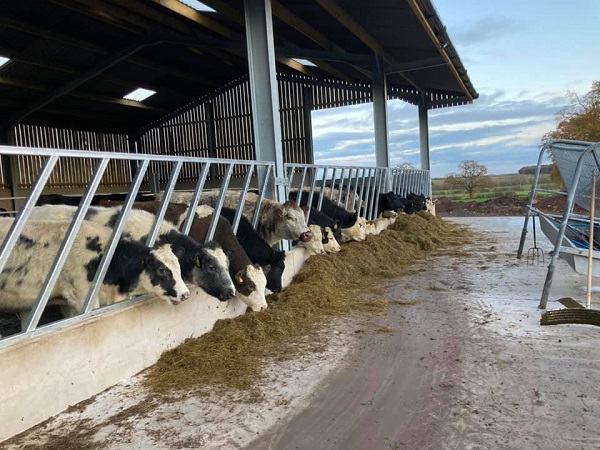We have around 100 cows, 400 ewes as well as pigs, chickens, geese, farm dogs and cats. We grow lots of grass to feed our livestock as well as oats and wheat.